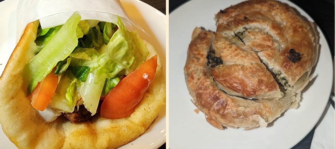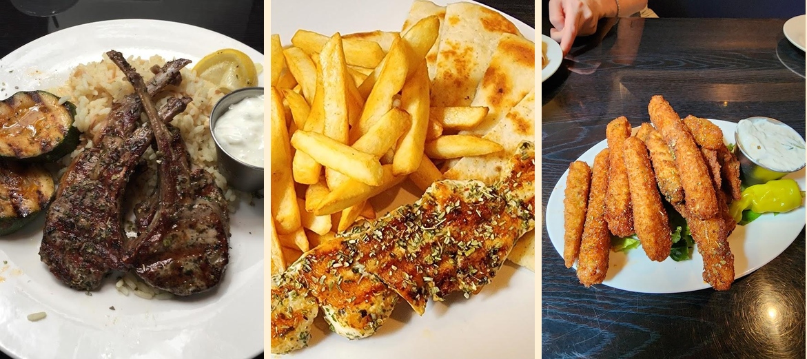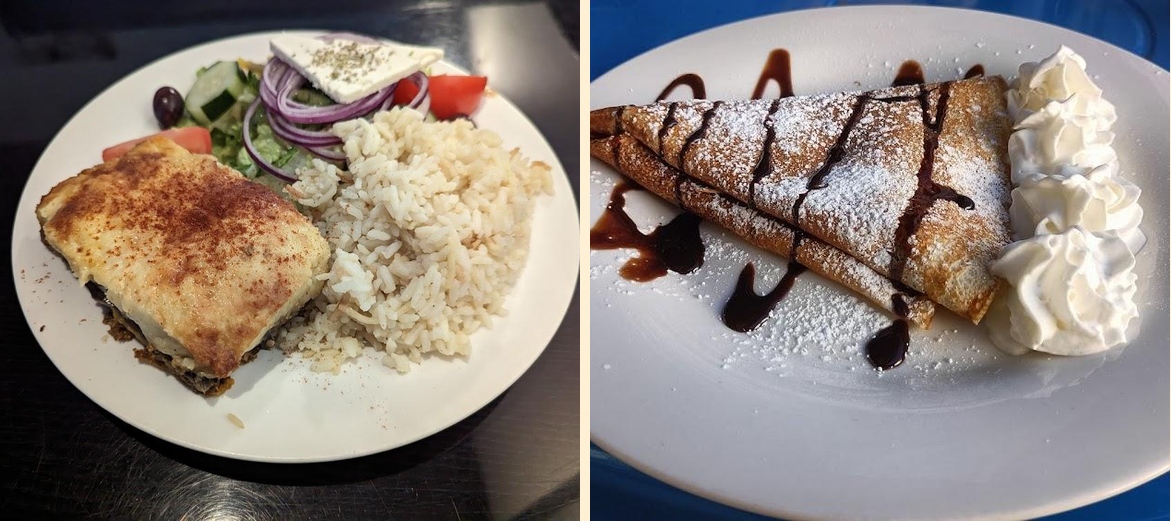 Try the Gyro Plate and OPA! Mixed Plate. The falafel is also excellent. For a lighter option, go for the Greek Salad. Don't miss the Nutella Crepes for dessert.