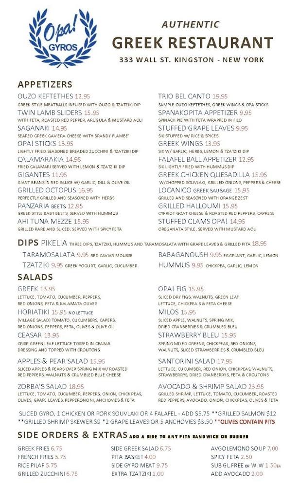 Discover the flavors of Greece at Opa! Gyros Greek Restaurant, located in the heart of Historic Uptown Kingston, NY. Voted the "Best Greek Food" in the Hudson Valley, we specialize in authentic gyros and Mediterranean cuisine that will transport your taste buds straight to the Aegean. Enjoy a cozy atmosphere for lunch or dinner, with options for both dine-in and takeout. Our welcoming space features a terrace, making it perfect for families, groups, and solo diners. Whether you’re craving a hearty meal or a refreshing glass of wine, Opa! is your go-to destination for delicious, healthy Greek dishes.